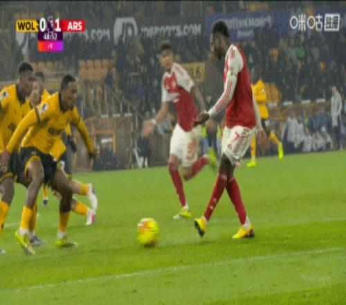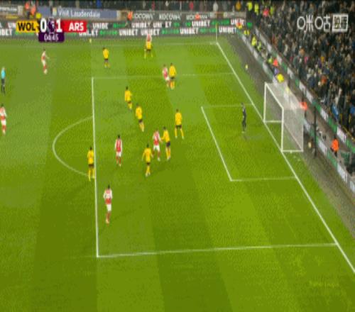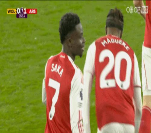 第5分钟,阿森纳左路策动进攻,马丁内利回传,赖斯得球斜传禁区,萨卡头球攻门得手,阿森纳1-0狼队。↓